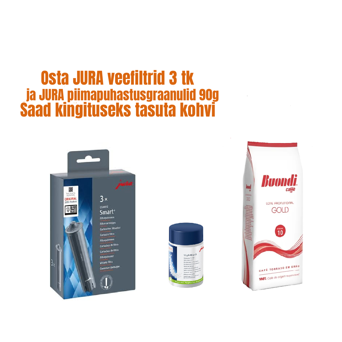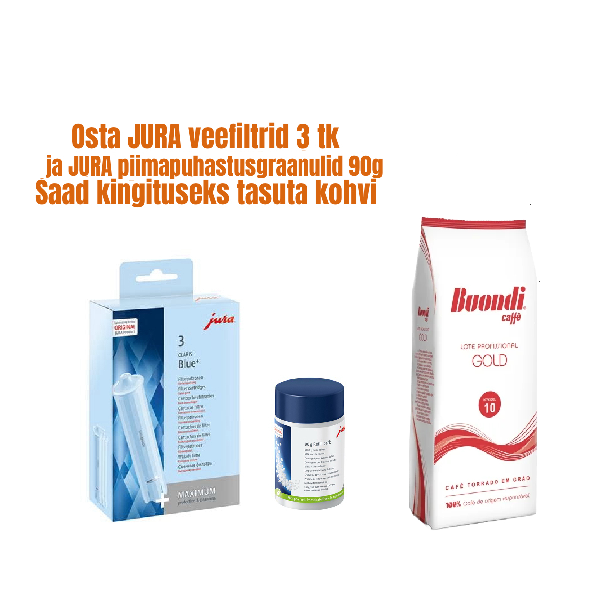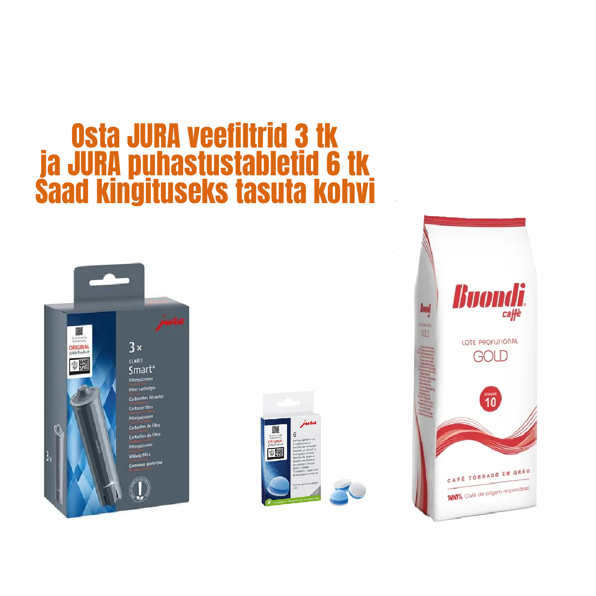 JURA Claris Blue+ ja puhastustabletid 6 tk + 1 kg tasuta kohvi